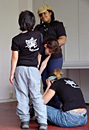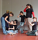 In der Probenphase vermittelt sie den Kindern spielerisch die Grundfertigkeiten des Theaterspiels und lässt sie ihre Möglichkeiten selbst erspüren und erproben.